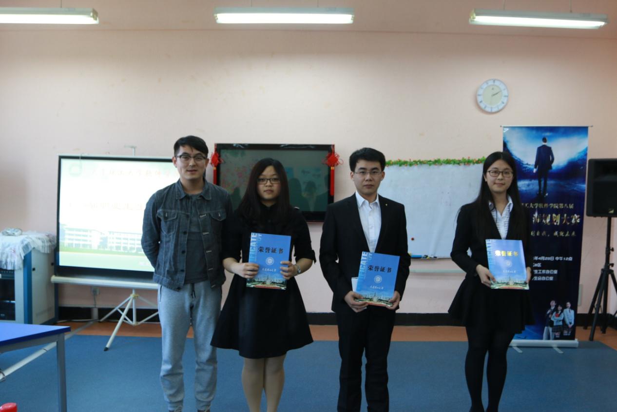 最后 ,根据现场自我展示及答辩的评委打分以及书面作品评审分数,此次大赛共产生一等奖3名,二等奖3名,三等奖4名,其中蔡真真同学,王俊同学和唐烨煊同学的职业生涯规划设计作品得到在场评委嘉宾老师和同学们的一致好评,摘得一等奖。随后各评委为获奖选手颁发了获奖证书。于此,本次职业规划大赛圆满结束。大学期间是职业生涯规划的黄金阶段,对大学生个人的未来职业走向和职业发展具有十分深远的影响,而通过对自己职业生涯的规划,大学生可以解决好职业生涯中的“四定”——定向、定点、定位、定心,尽早确定自己的职业目标,选择自己职业发展的地域范围,把握自己的职业定位,保持平稳和正常的心态,按照自己的目标和理想有条不紊、循序渐进地努力。希望广大学子能通过本次大赛尽早为自己的职业生涯进行规划,从而拥有一个完美的职业生涯。
