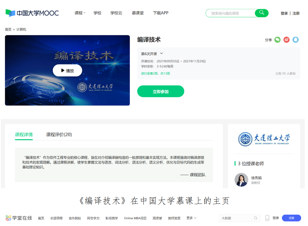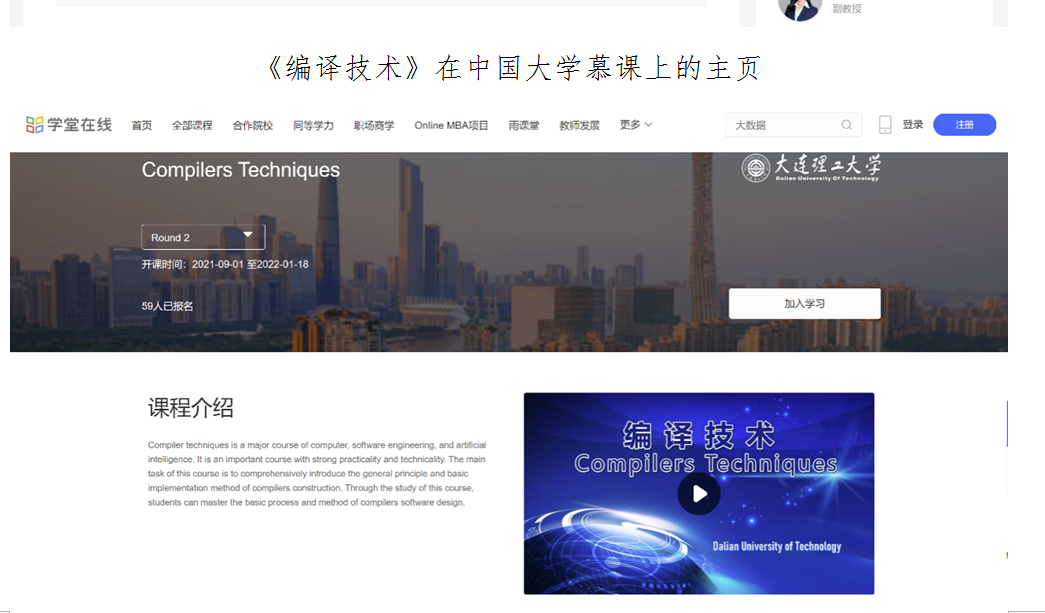 《编译技术》英文版在学堂在线上的主页