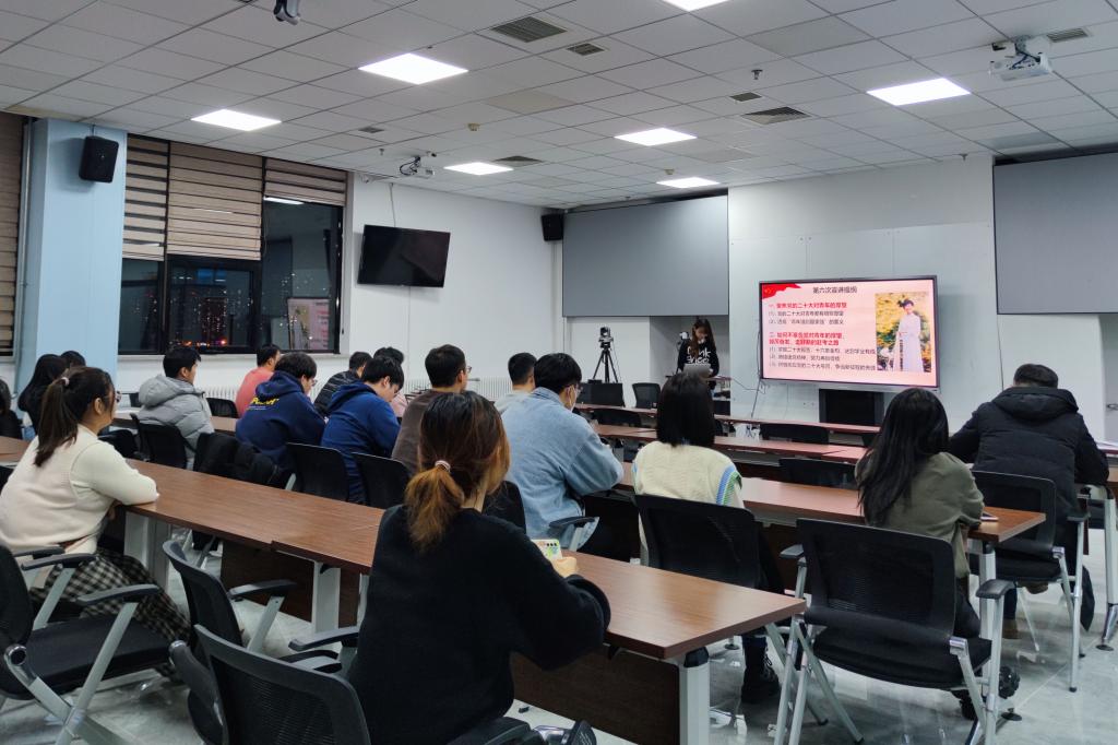 此次党日活动邀请了学校党的二十大精神宣讲团成员、校党委特邀党建组织员徐晓英副研究员讲述专题党课。徐晓英副研究员以《聚焦党的二十大对青年的厚望,踔厉奋发走好新的赶考之路》为题,深入讲解了党的二十大报告中十六条金句以及党的精神谱系的内涵,鼓励当代青年坚定不移听党话、跟党走,争当新征程先锋。