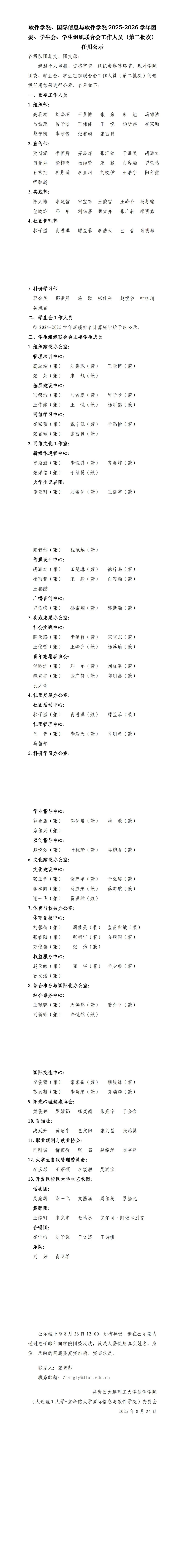 软件学院、国际信息与软件学院2025-2026学年团委、学生会、学生组织联合会工作人员(第二批次)任用公示