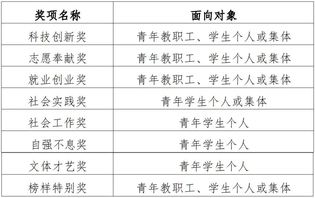 “科技创新奖:潜心学术科研、积极思考、刻苦钻研、努力掌握先进的科学文化知识,积极投身科学技术前沿研究,在理论创新、科技攻关、学术研究、学科竞赛以及创新性学 习等领域取得突出业绩,特别是在挑战杯全国大学生课外学术科技作品竞赛上取得突出成绩。