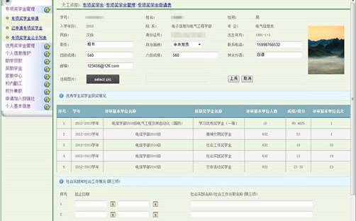 1、学号、姓名、性别、入学年份、院系、专业、民族、身份证号、出生年月、优秀奖学金获奖情况、荣誉称号为系统已有信息,无需学生填写;