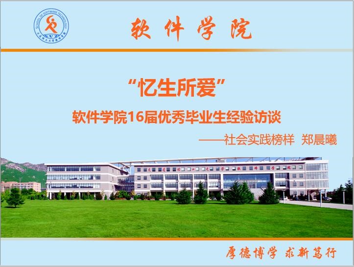 为了让优秀毕业生与低年级学生更好地沟通,发挥好传、帮、带的作用,学院2016届毕业生工作组筹划了“忆生所爱”专题栏目,通过人物访谈的形式来解读他们背后的成长故事。栏目首期嘉宾为原校学生会副主席兼软件学院团委副书记郑晨曦。
