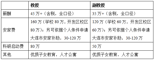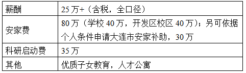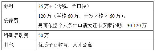 实行协议工资制,提供竞争力的薪酬和福利待遇,充足的科研启动经费。安家住房补贴除享受学校政策之外,开发区校区将按照1:1的标准进行匹配。