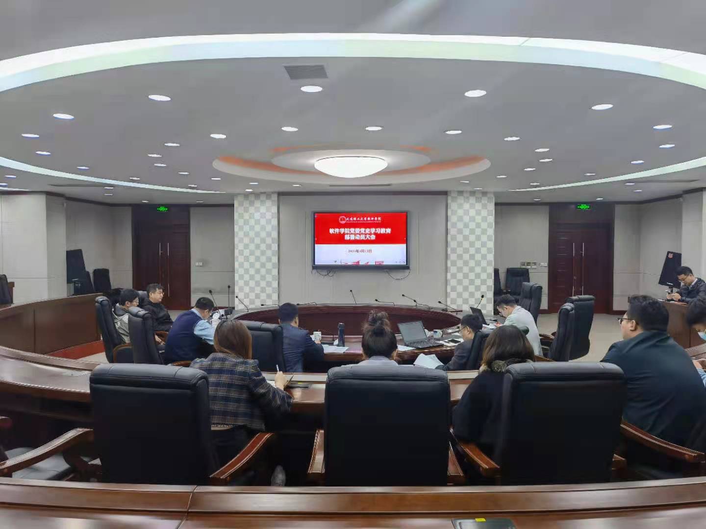2021年4月12日上午,软件学院于开发区校区综合楼204会议室召开党史学习教育部署动员大会,就学院党委深入贯彻落实党中央和学校党委有关深入推进党史学习教育的精神进行部署动员。学院党政班子成员、各师生党支部委员参加了会议,会议由党委组织员齐磊主持。