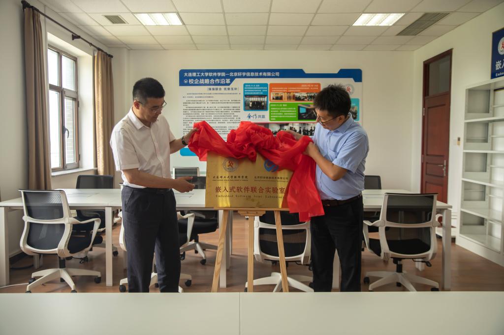 ——7月19日下午,江云松、吴国伟共同为“大连理工大学软件学院-北京轩宇信息技术有限公司嵌入式软件联合实验室”揭牌,双方联合共建的科研平台正式落地,依托此平台,双方将围绕嵌入式软件领域持续开展学术研究、技术开发及人才培养,推动“产、学、研”深度融合;