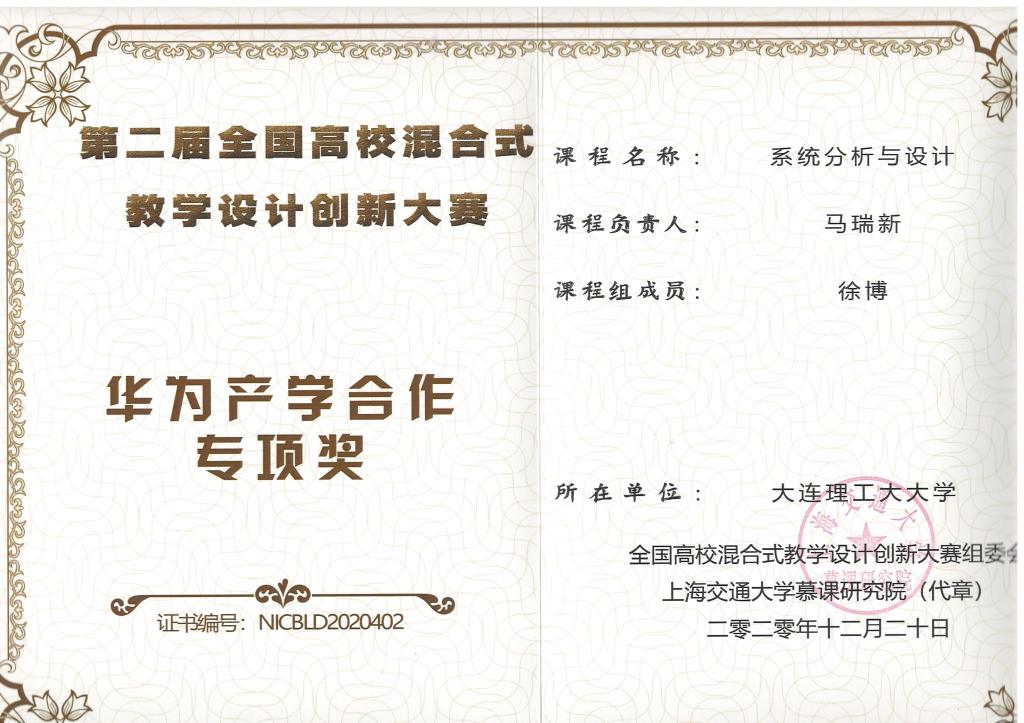 本次我院入围的优秀项目案例是我院与华为公司产学合作,紧跟企业新技术发展,与华为专家一同打造的多个适合教学的企业案例。案例中将华为高斯数据库、云计算、人工智能、大数据、欧拉系统等先进的技术融入到各个章节教学中,同时将华为中级企业认证内容引入教学实践,聘请华为的解决方案专家参与教学,让企业案例走进课堂,让学生在真实的企业环境中进行开发,提前了解企业的日常工作流程和规范,并认识到和企业能力等级要求的差距,主动增负,实现产学人才的无缝衔接。此举优化了院内《系统分析与设计》、《软件开发技术》、《JAVA程序设计》课程内容,提升了课程的高阶性、创新性;建设了线上线下混合课程资源,编写了《系统分析与设计》、《数据库原理与技术-基于华为GaussDB》、《JAVA程序设计-基于软件开发云》等一系列教材,被30所院校选用,并被华为内部认证的指定教材;设计基于华为软件开发云翻转课堂的教学模式,有效推进了学院创新人才培养,与华为公司每年小学期开展《鲲鹏应用数据分析与管理》实训,学生通过边学边实践,自主创新开发作品参加“华为鲲鹏应用创新大赛”,“2020鲲鹏应用创新大赛”以及“首届华为云DevCloud大赛”等,获得赛区总决赛一、二、三等奖,课程负责人马瑞新老师在华为云DevCloud大赛中获最佳组织奖和优秀指导奖;此外《系统分析与设计》课程获得全国混合课程大赛特等奖、国家级和省级一流线上线下课程、华为产学成果奖以及校级课程思政示范课,《JAVA程序设计》获批省级一流线上线下课程,校外学生通过MOOC完成线上知识学习,线上选课学生达到5万人,课程相关建设经验多次在中国计算机教育大会、新工科大会、人工智能大会、华为HTC大会等受邀专题报告20余次。