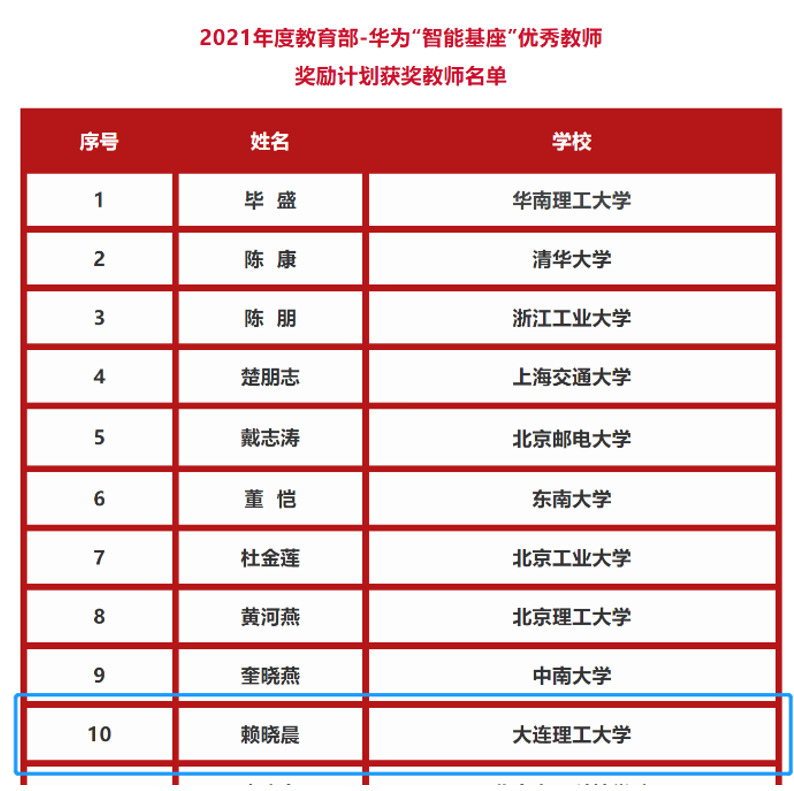 2022年3月9日,教育部-华为“智能基座”优秀教师评审委员会揭晓首届优秀教师奖励计划名单。我院赖晓晨教授成功入选2021年度教育部-华为“智能基座”优秀教师奖励计划,并于3月26日在2021年中国计算机教育大会(CECC2021)上作为“智能基座”先锋教师作教学成果和实践经验分享专题报告。