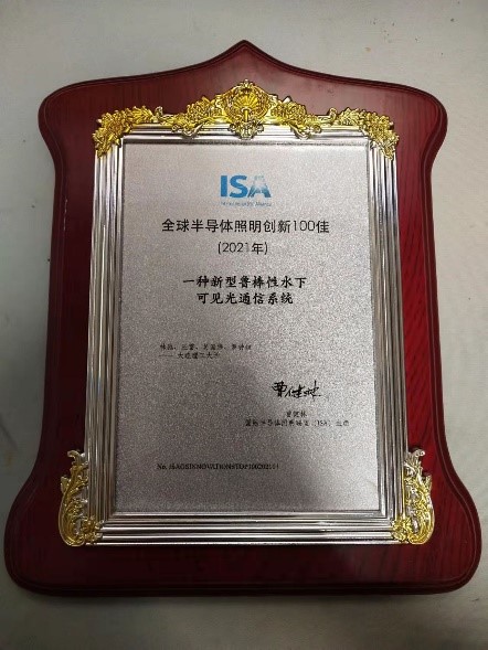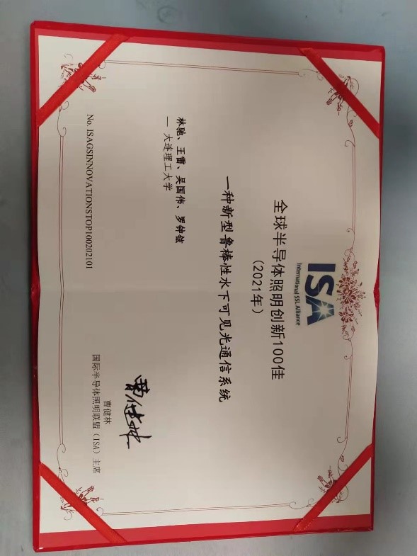 近日,大连理工大学软件学院水下通信研究组林驰、王雷、吴国伟、赵哲焕、罗钟铉等人的研究成果“一种鲁棒性水下可见光通信系统(Shrimp: A Robust Underwater Visible Light Communication System)”获得2022年日内瓦国际发明展国际金奖。