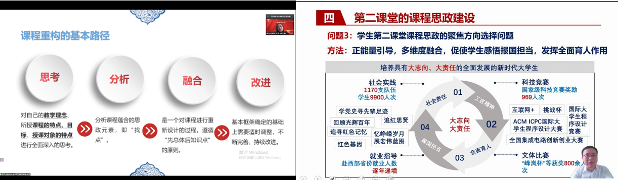 为深入贯彻落实习近平总书记关于教育的重要论述和全国教育大会精神,落实教育部印发的《高等学校课程思政建设指导纲要》要求,全面推进课程思政建设,为教师搭建课程思政建设交流平台,助力特色化示范性软件人才培养,2022年4月9日,大连理工大学软件学院联合大连理工大学教师教学发展中心、大连理工大学国家级计算机系统课程虚拟教研室面向校内外举办课程思政教学论坛。