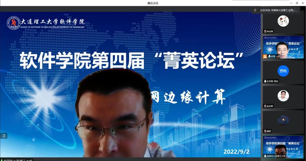 2022年9月2日上午,软件学院第四届“菁英论坛”顺利举行。本次论坛采用线上学术研讨会的形式,以物联网边缘计算为主题,围绕学术前沿问题和学科热点问题,展开学术交流与探讨。论坛邀请西安电子科技大学杜军朝教授、山东大学于东晓教授做专题学术报告,学院100余名师生参加了此次论坛。论坛由智能系统研究所副所长林驰主持。