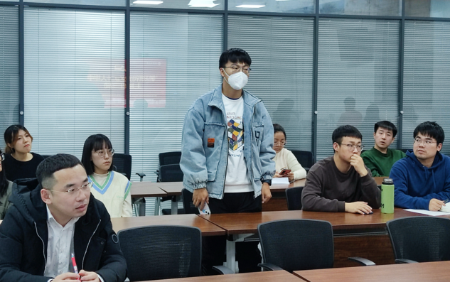随后,支部党员围绕党的二十大精神进行了交流分享,支部党员表示,“党的二十大总结了过往成就,擘画了未来发展的蓝图,作为新时代的大学生在深感自豪的同时也感到责任在肩”。在热烈的讨论交流后,罗钟铉副校长结合学校发展实际讲述了自身对于党的二十大精神的理解,为支部党员上了一堂生动的党课。最后,罗钟铉副校长对党日活动进行了总结和寄语。
