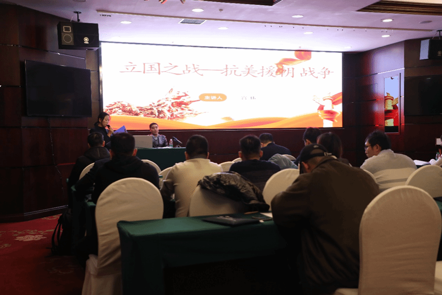 11月17日至19日,培训班赴丹东开展教育培训。第一场专题教学以《立国之战—抗美援朝战争》展开,主要讲述抗美援朝的背景、意义及深远影响,通过五次战役深入了解我国人民志愿军在抗美援朝战争中的英雄事迹,激发培训学员的党性修养,厚植家国情怀。