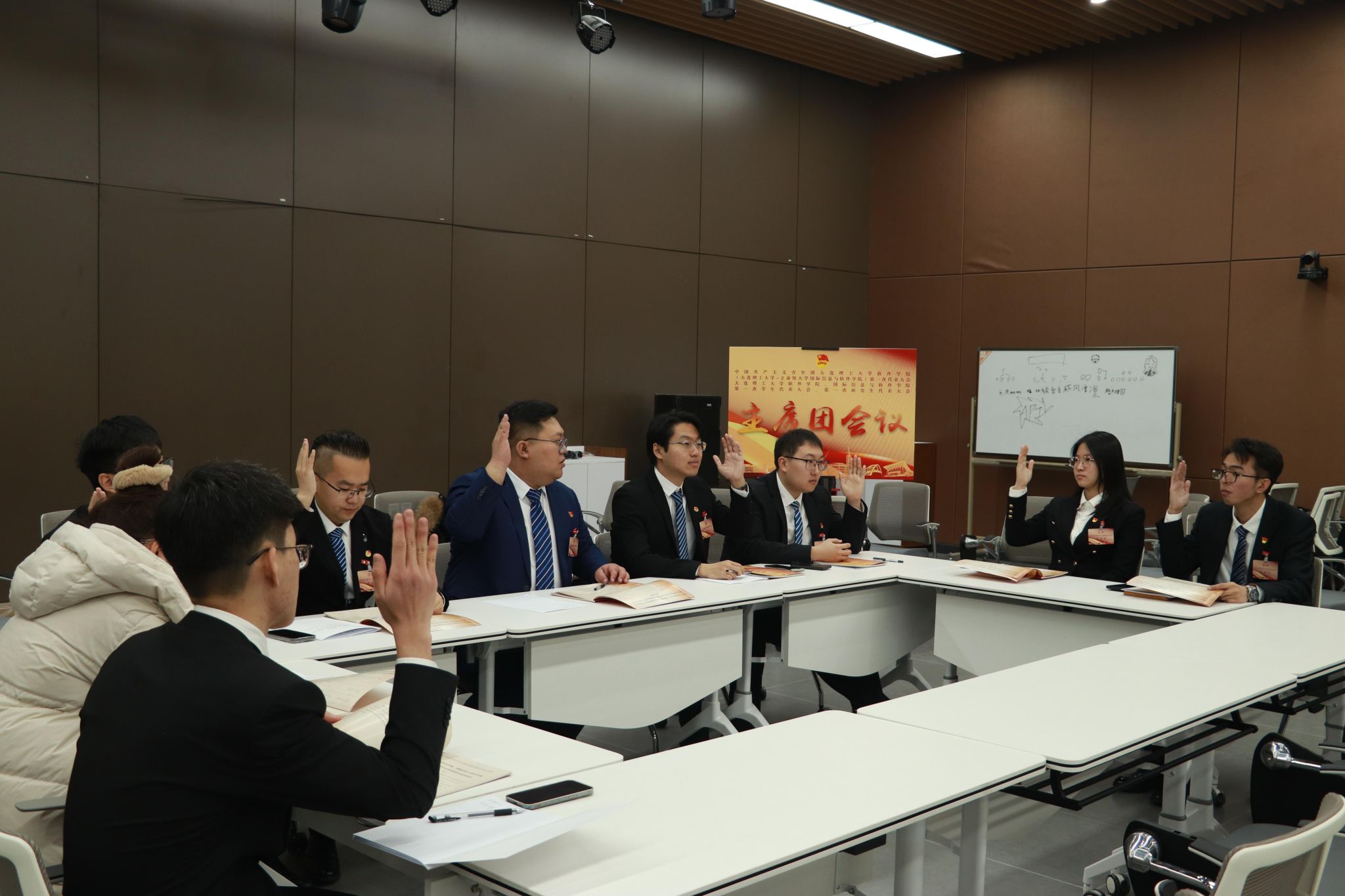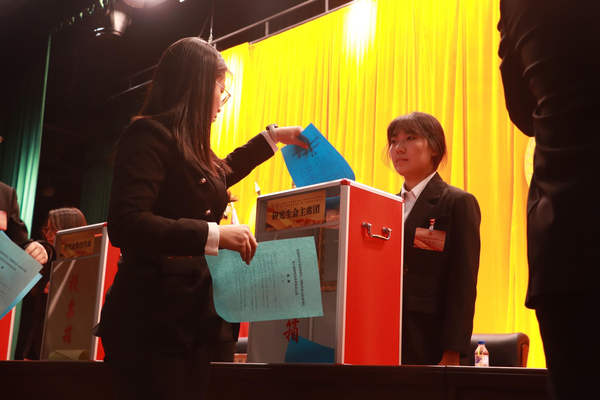会后,召开各代表团分团会议及主席团会议,听取并讨论了各代表团关于团委、学生会、研究生会工作报告的决议,大会选举办法,团委委员候选人、学代会和研代会常人代表候选人、学生会和研究生会主席团成员候选人建议名单等议程。大会第二次全体会议审议通过了关于工作报告的决议、大会选举办法、各候选人名单、总监票人、监票人名单等议程,并选举产生第一届团委委员、学代会常任代表、学生会主席团成员、研代会常任代表、研究生会主席团成员。